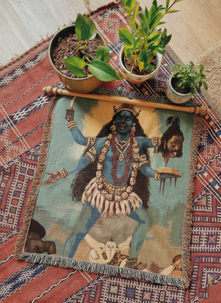 Kali Woven Blanket – Raja Ravi Varma Art Tapestry, Goddess Blanket