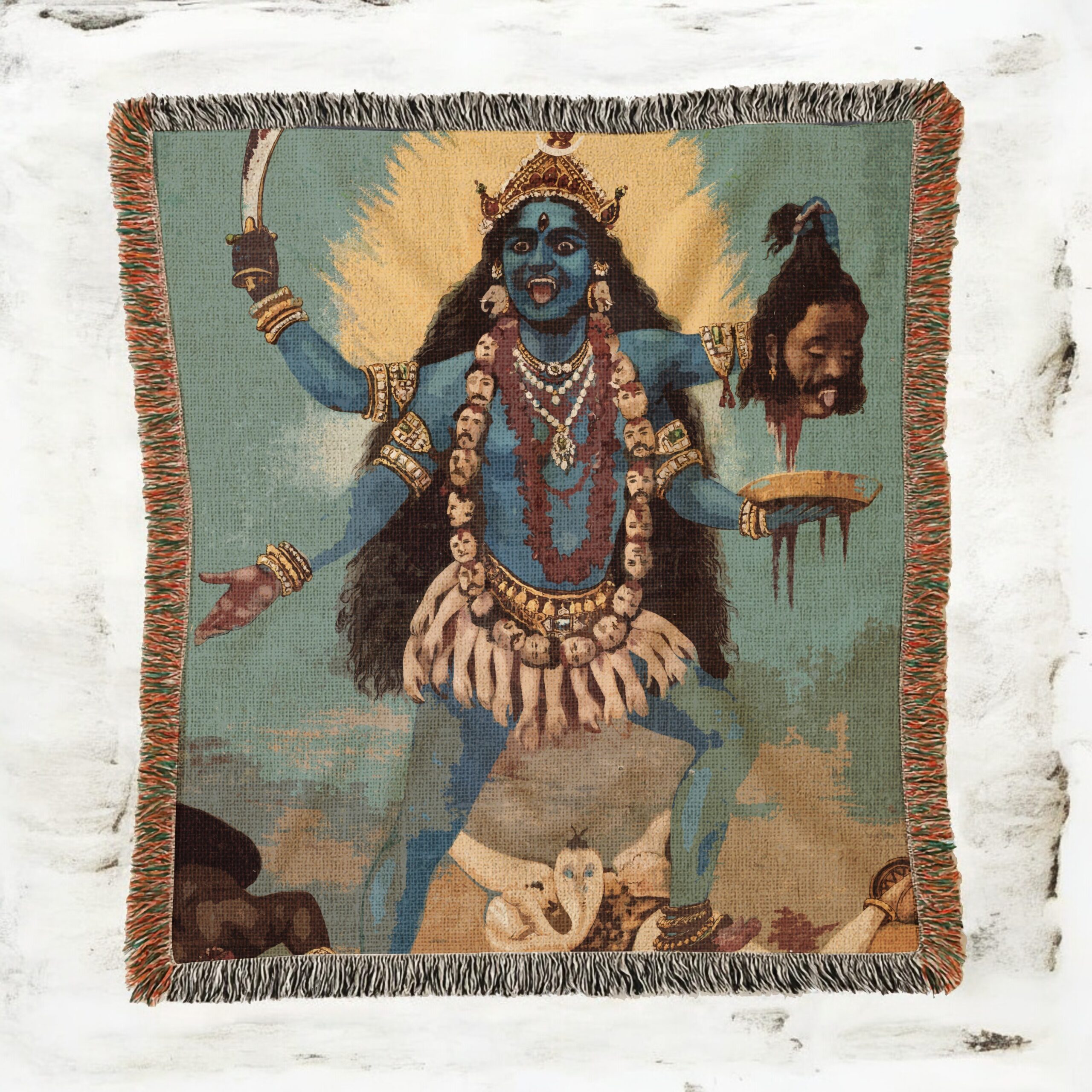 Kali Woven Blanket - Raja Ravi Varma Art Tapestry, Goddess BlanketKali Woven Blanket – Raja Ravi Varma Art Tapestry, Goddess Blanket