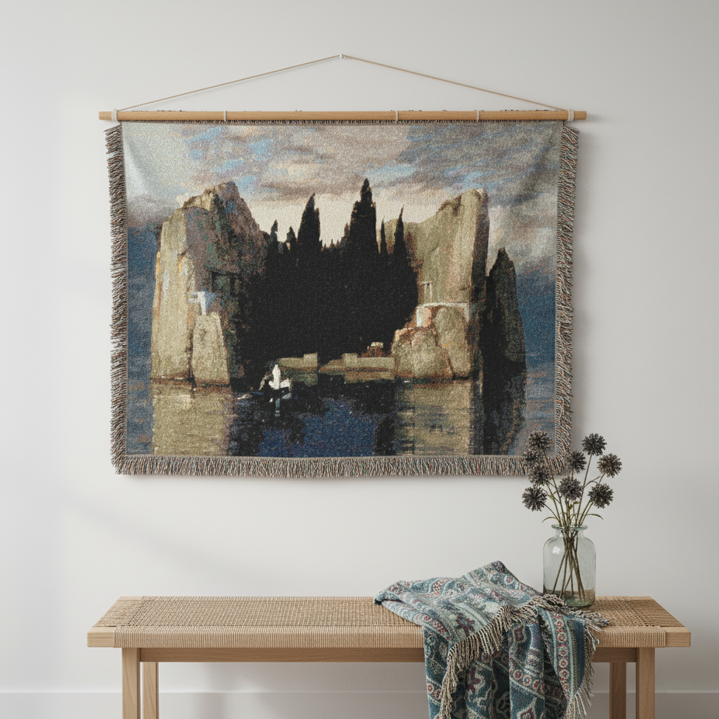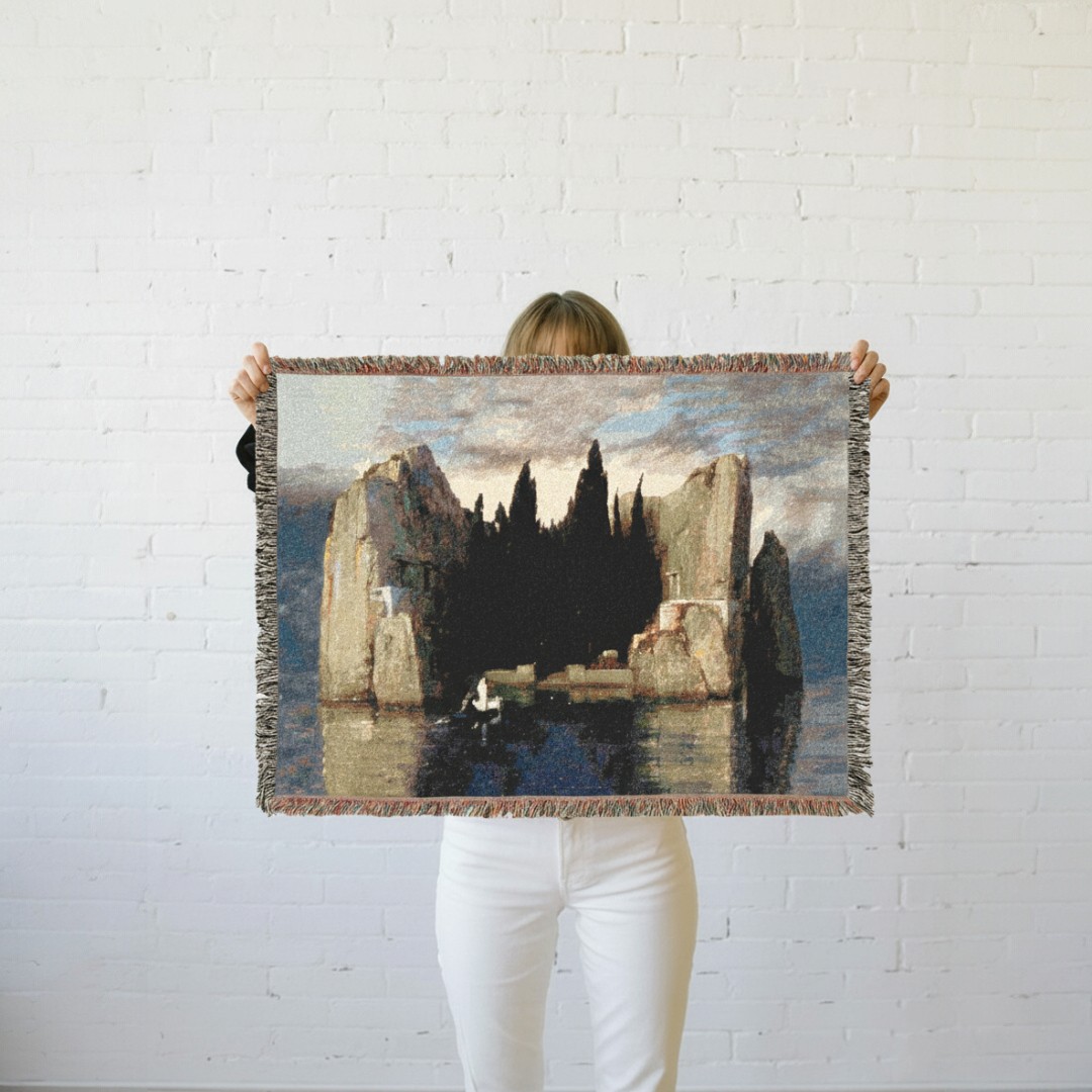 Experience the hauntingly poetic imagery of Arnold Böcklin’s Island of the Dead (Third Version) in the form of a tactile, living woven blanket. This modern reliquary of Symbolist beauty invites reflection and rest, creating a quiet dialogue between art and warmth. Perfect for those who appreciate art, symbolism, and contemplation. Ideal for creating a cozy atmosphere during the fall and winter seasons, as well as for those who enjoy unique home decor pieces.