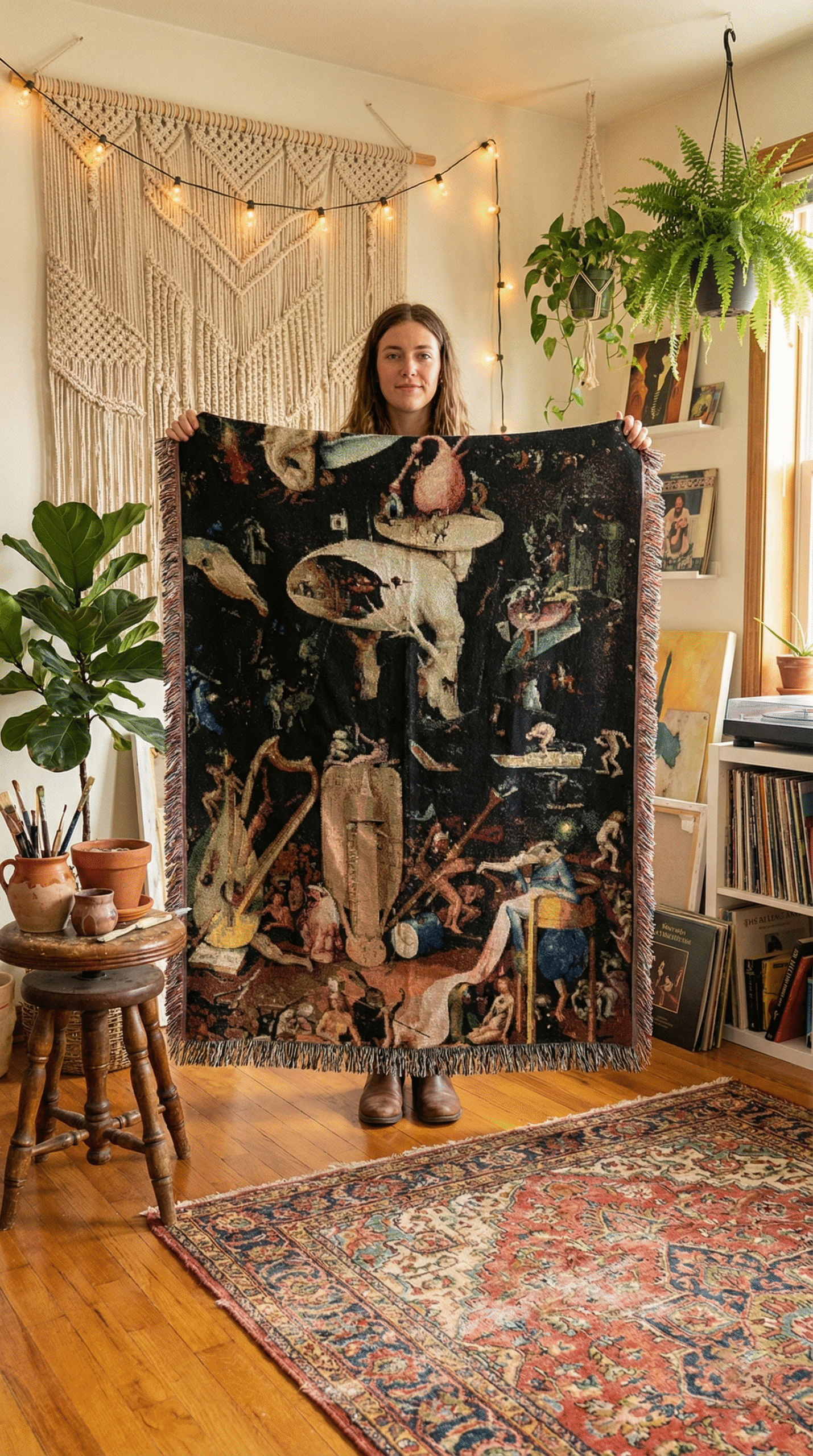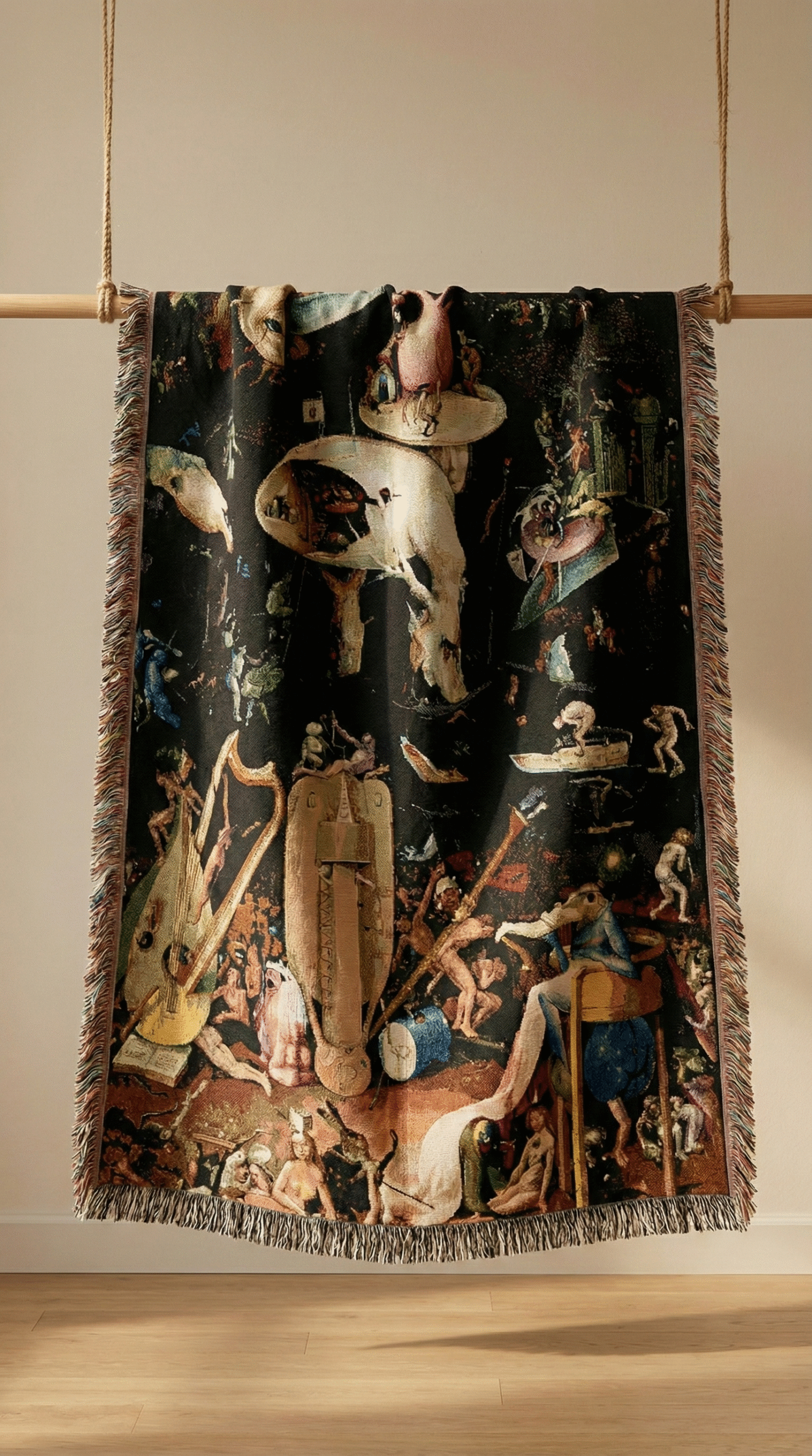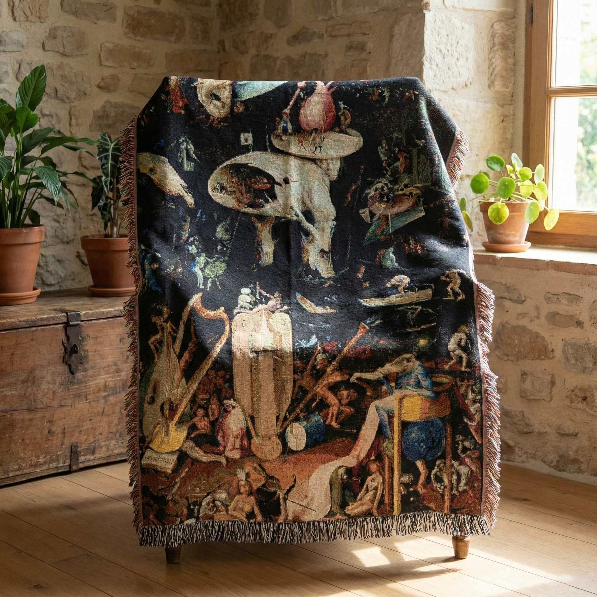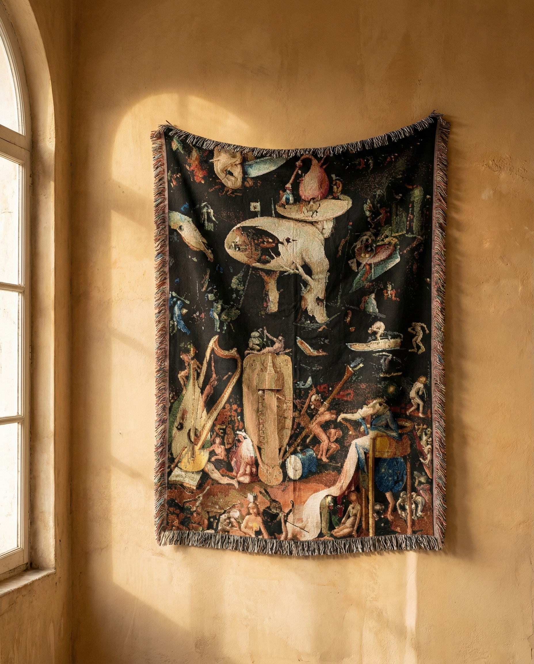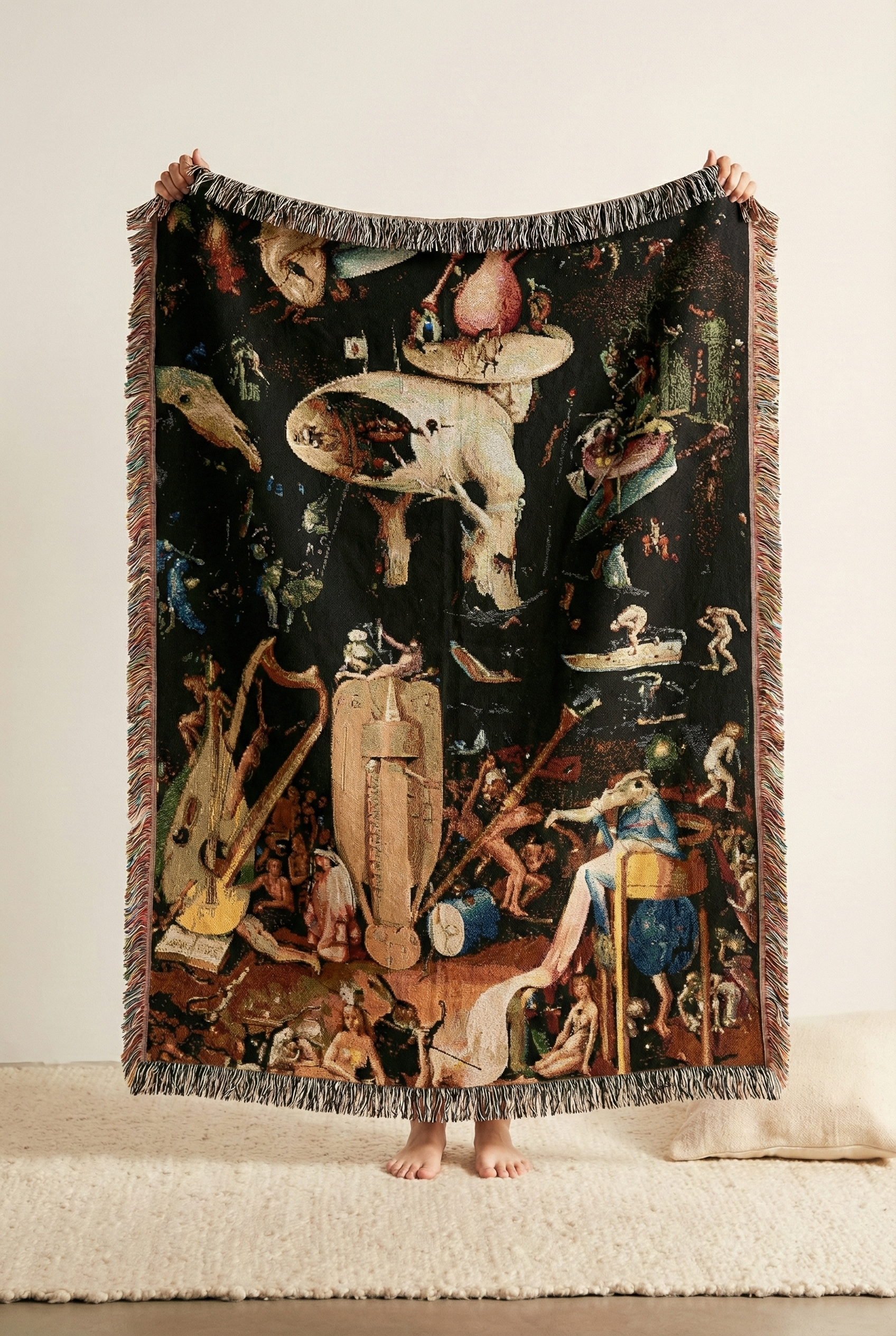 Woven Blanket, Hieronymus Bosch's The Garden of Earthly Delights Infernal Vision Tapestry, Surreal Art BlanketWoven Blanket, Hieronymus Bosch’s The Garden of Earthly Delights Infernal Vision Tapestry, Surreal Art Blanket