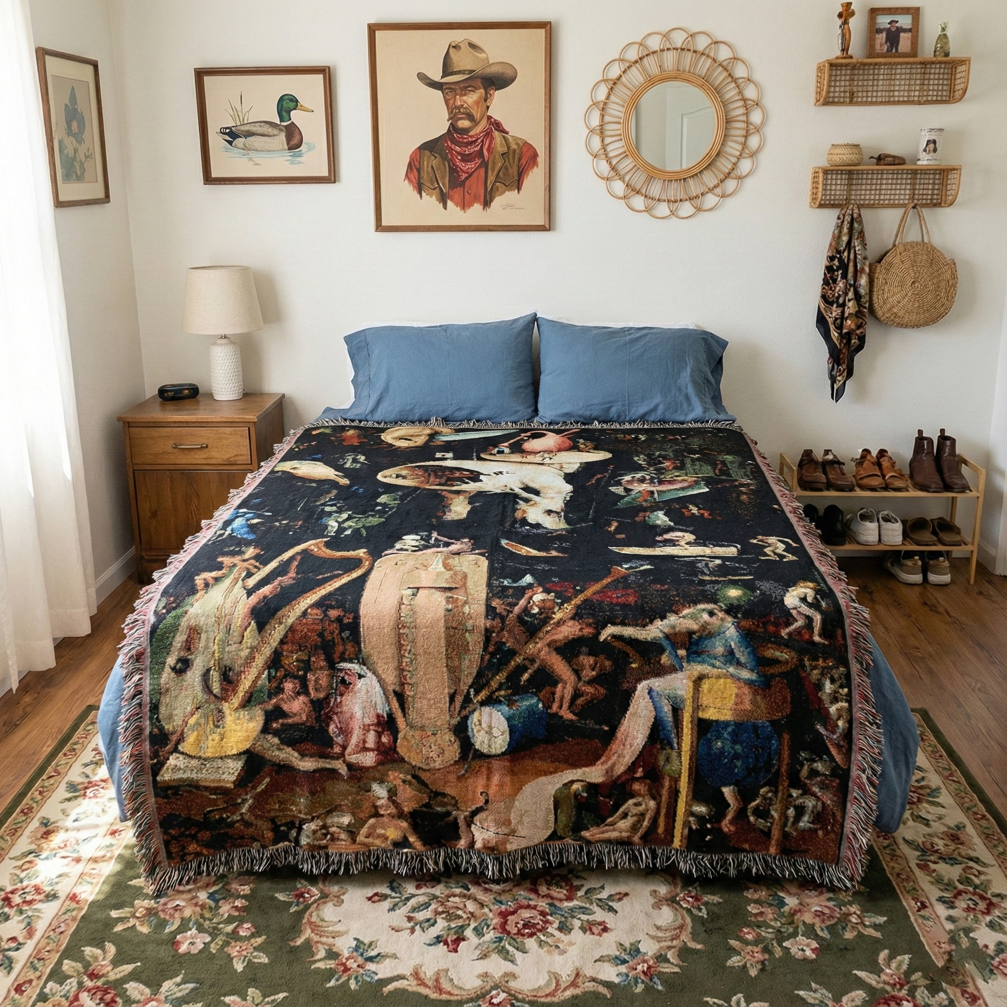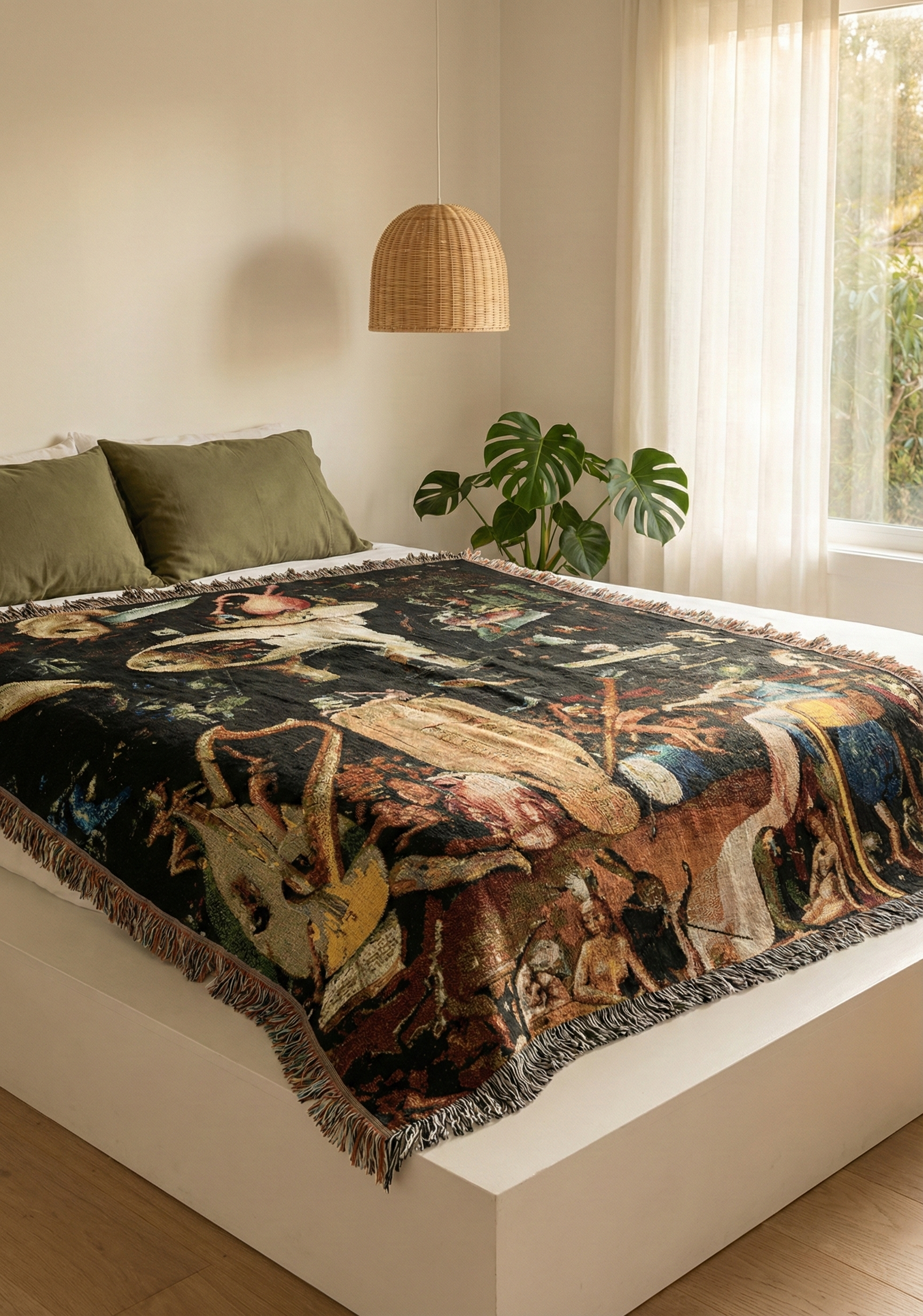 Woven Blanket, Hieronymus Bosch’s The Garden of Earthly Delights Infernal Vision Tapestry, Surreal Art Blanket