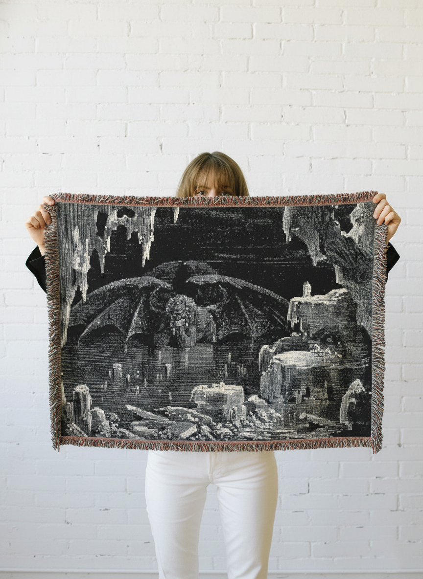 Embrace the quiet power of myth and allegory with this haunting woven blanket featuring Lucifer, King of Hell, from Gustave Doré’s Inferno engravings. Perfect for those drawn to dark, ethereal aesthetics and literary history, this art piece reimagined in fabric adds a touch of the underworld to your home decor. Ideal for fans of Dante’s Inferno, Gothic themes, and macabre art.
