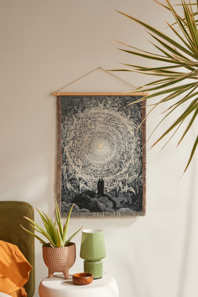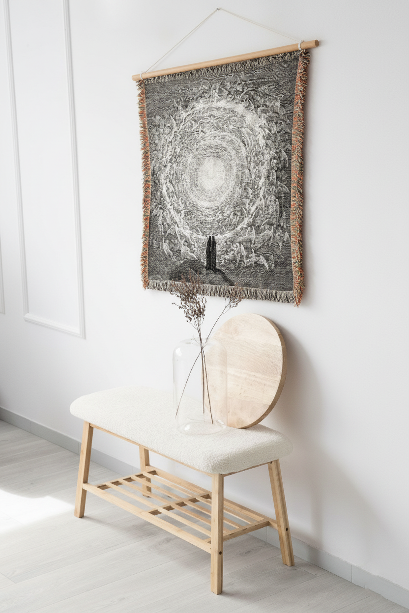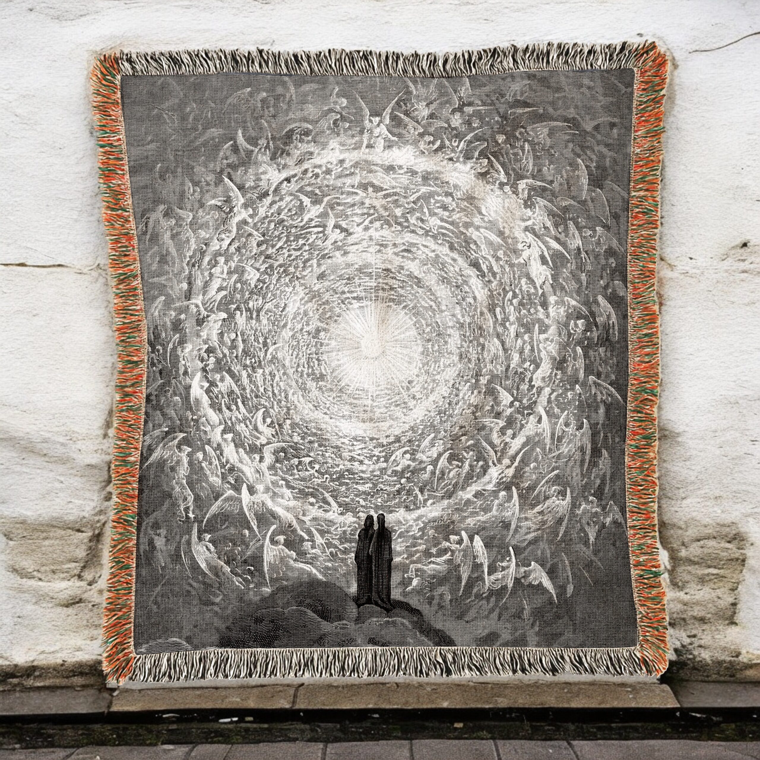 Wrap yourself in the divine beauty of Gustave Doré’s ‘Paradiso, Canto 34’ with this woven blanket. Feel the awe-inspiring atmosphere of Dante’s ascension into the Empyrean as you cozy up with this intricately designed piece. Perfect for art lovers, literature enthusiasts, and those who appreciate divine inspiration. Ideal for gifting during religious holidays, birthdays, and special occasions.